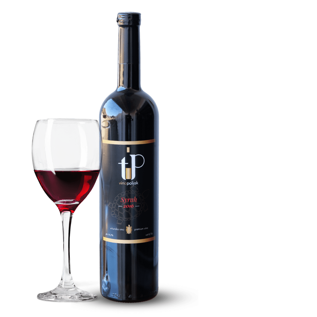 Vrhunsko crno vino, rubinski duboke boje, koje već na prvi pogled otkriva svoju raskošnost. U Syrahu dominiraju prepoznatljive voćne arome tamnog bobičastog voća, uz suptilne začinske tonove karakteristične za sortu. Vino je puno, suho i zaokruženog tijela, s toplim alkoholima koji doprinose dojmu harmonije i dugotrajnosti.
